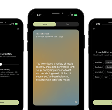 Log your meal in seconds along with your hunger level and current mood. This simple act of checking in helps you identify satisfaction—discovering which foods leave you energized and which leave you drained.