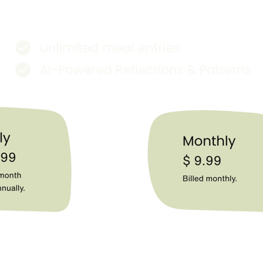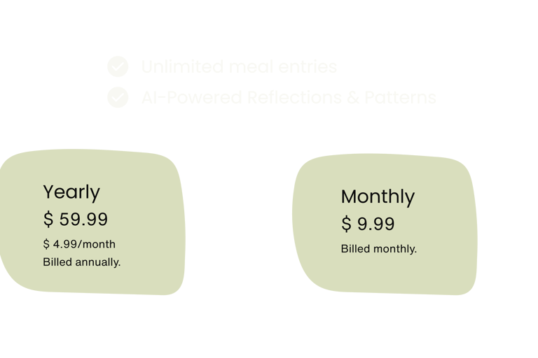 Unlock unlimited journal entries and advanced AI-powered patterns, and deep-dive reflections. Navigate complex challenges like emotional eating or social anxiety with personalized insights designed to strengthen your intuitive muscles.