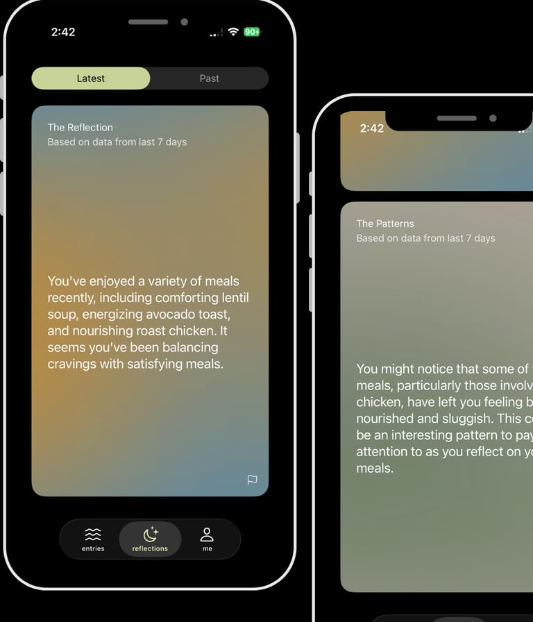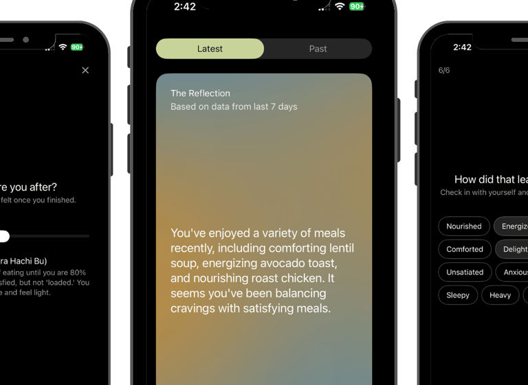 Receive an AI-powered reflection that connects your feelings to your choices with compassion. These insights help you spot the triggers—understanding if you’re eating because you’re hungry, or because you’re tired, stressed, or bored.